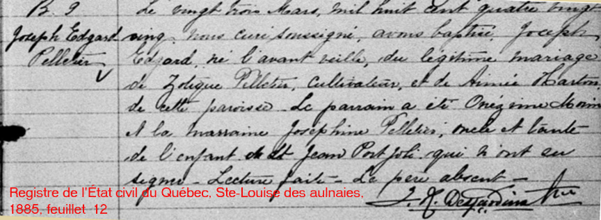 La Branche de Edgar Pelletier N*1885 D*1972 Marié à Marie-Jeanne Pelletier N*1888 M*1915 D*1971 Ascendants |