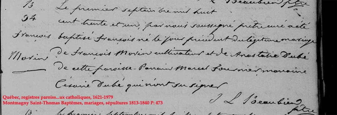 La Branche de François Morin N*1831 D*? Marié à Marguerite Montminy N*? M*1867 D*? Ascendants |