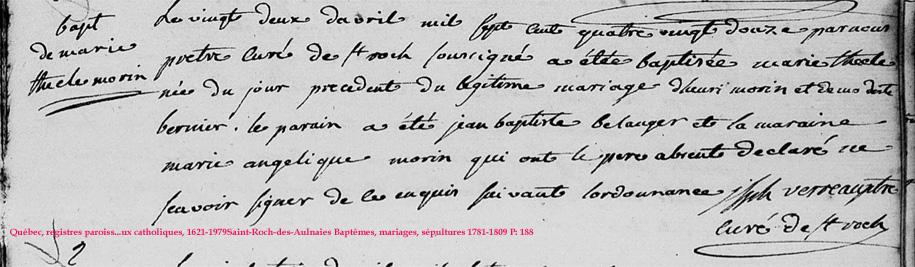 La Branche de Thecle Morin N*1792 D*1830 Mariée à Jean-Baptiste Pelletier N*1783 M*1807 D*? Ascendants |